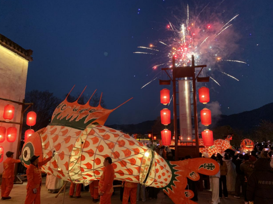 夜幕降临,呈坎的年味更添几分浪漫。灯笼的暖光洒满青石板路,与家家户户透出的灯光交织在一起,将古村笼罩在一片温馨的光晕里。鱼灯巡游时,烟火划破夜空,绚烂的火花在马头墙上空绽放,引得游人纷纷驻足拍照。此刻的呈坎,没有喧嚣的人潮,只有千年古村与新春撞个满怀的静谧与热闹,让人沉醉其中,流连忘返。