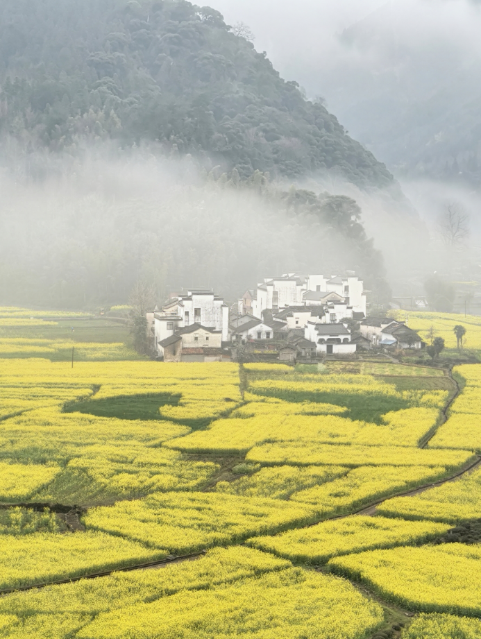 春风送暖,万物复苏,正是踏青旅游的好时节。近日,黄山市休宁县板桥乡呈村迎来油菜花海盛花期,金黄花海与粉墙黛瓦的徽派村落、缭绕山间的云雾相映成趣,构成一幅绝美的春日生态画卷,吸引众多游客前来打卡观赏。