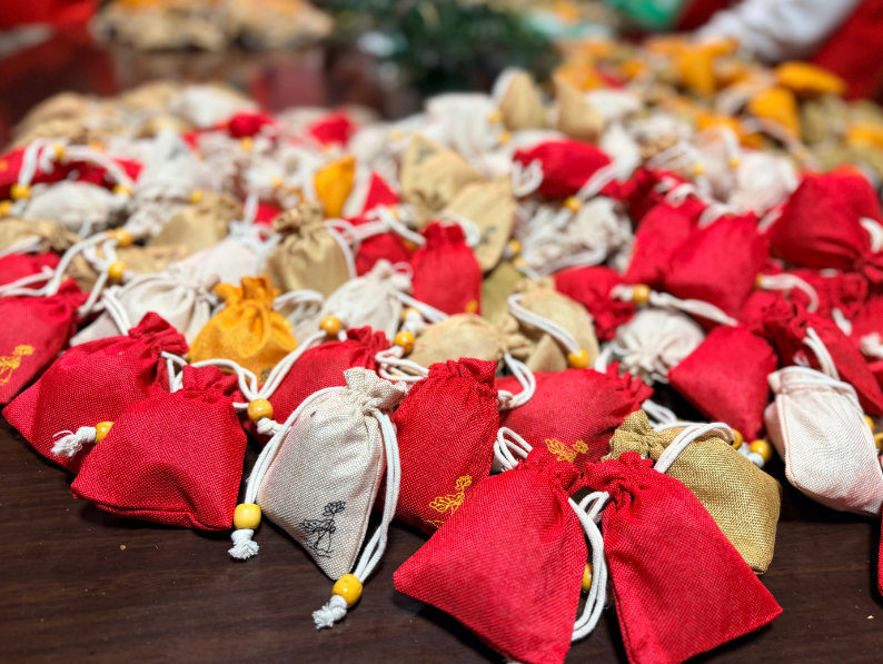 10月27日晚,璜尖乡新时代文明实践所内灯火通明、暖意融融。乡、村两级干部与志愿者们齐聚一堂,开启了香囊集中制作环节。制作过程中,大家自发分组协作、互帮互助,围坐讨论填充香料比例、装饰打结等,会议室里不时传来欢声笑语。每完成一个香囊,工作人员都会仔细检查其密封性与完整性,确保送到老人手中的每一份礼物都“合格又暖心”。短短时间,一个个色彩素雅、香气淡雅的香囊陆续成型,整齐收纳的不仅是手工制品,更是对老年人沉甸甸的牵挂。