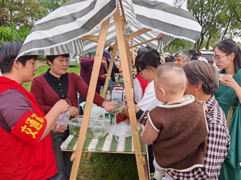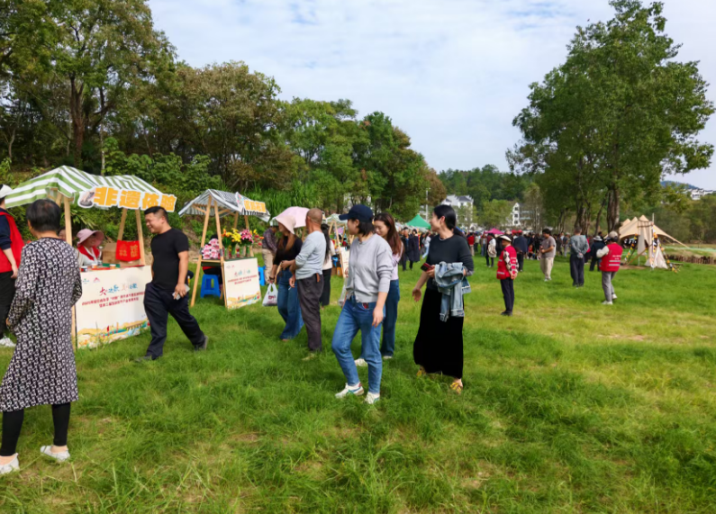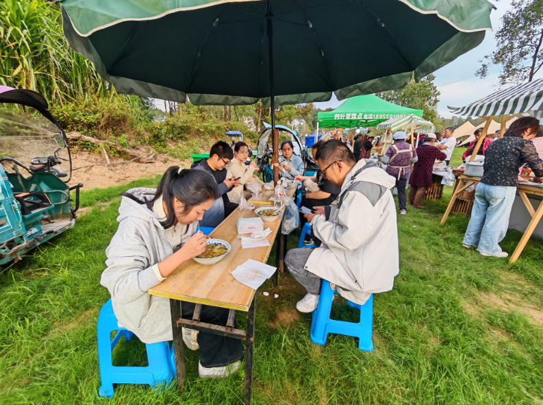 活动现场,茶干、米酒、米糕、烧饼、艾叶粿、徽粽、蜂蜜、葛粉、馄饨、干笋等20余类五城特色农产品展销摊位前人潮涌动。游客们一边欣赏台上精彩的“村晚”文艺表演,一边品尝现做现卖的“五城风味”,欢声笑语与乡土美食相映成趣,勾勒出鲜活的乡村生活画卷。