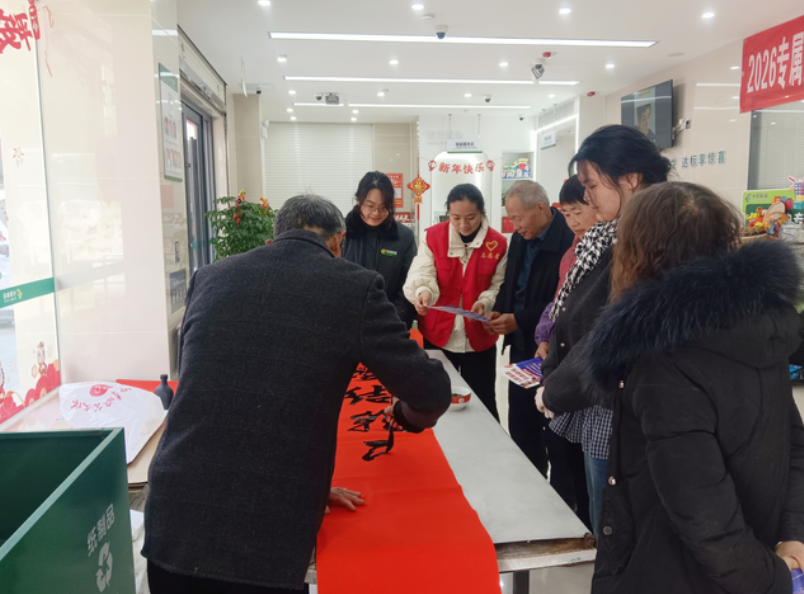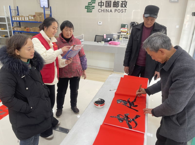 活动现场,邮政储蓄银行璜田支行门前墨香四溢,书法爱好者们挥毫泼墨,一副副寓意吉祥的春联和“福”字传递着浓浓年味。工作人员借此契机,在赠送春联的同时,积极向等候的群众特别是中老年群体发放反电诈宣传折页,讲解近期高发的诈骗典型案例。