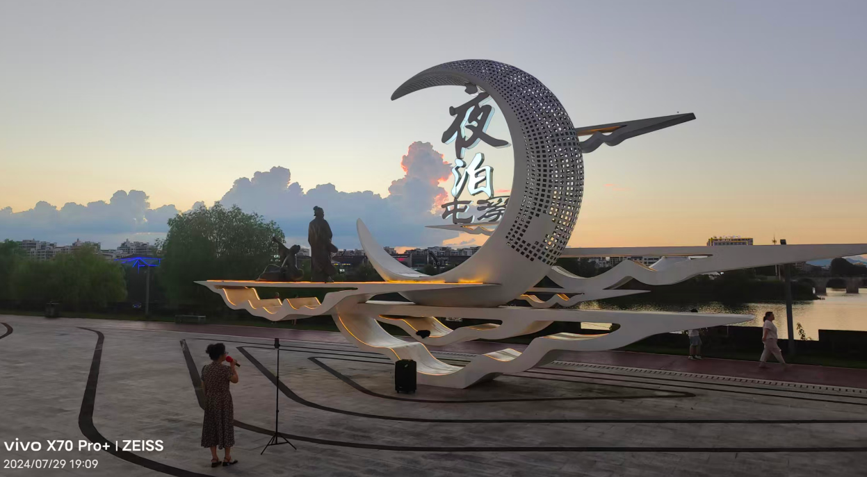 第一眼的屯溪,果真是要淹死人的大。新安江竟能这般阔阔地劈开一座城,江水清澈透底,托着帆船不紧不慢地摇,像匹陈年的老绸子在抖。我们挤在新安桥的石栏边,脖颈伸得像鹅。原来城是可以被水分成两爿的,对岸的屋脊挤挤挨挨,黑瓦连成一片漾动的海。后来逛了"江心洲广场",看了些时髦的物事;又钻进"老街",石板路被百年的鞋底磨得起了清光,两边木门板上的雕花,缠枝莲、暗八仙,都在阴翳里喘着古老的湿气。老师说这是“活的《清明上河图》”,我那时不懂画,只觉满街的门洞都像张着的嘴,吞吐着陌生的、热闹的声浪。那天夜里,我的梦里全是晃荡的水和没完没尽的石阶。