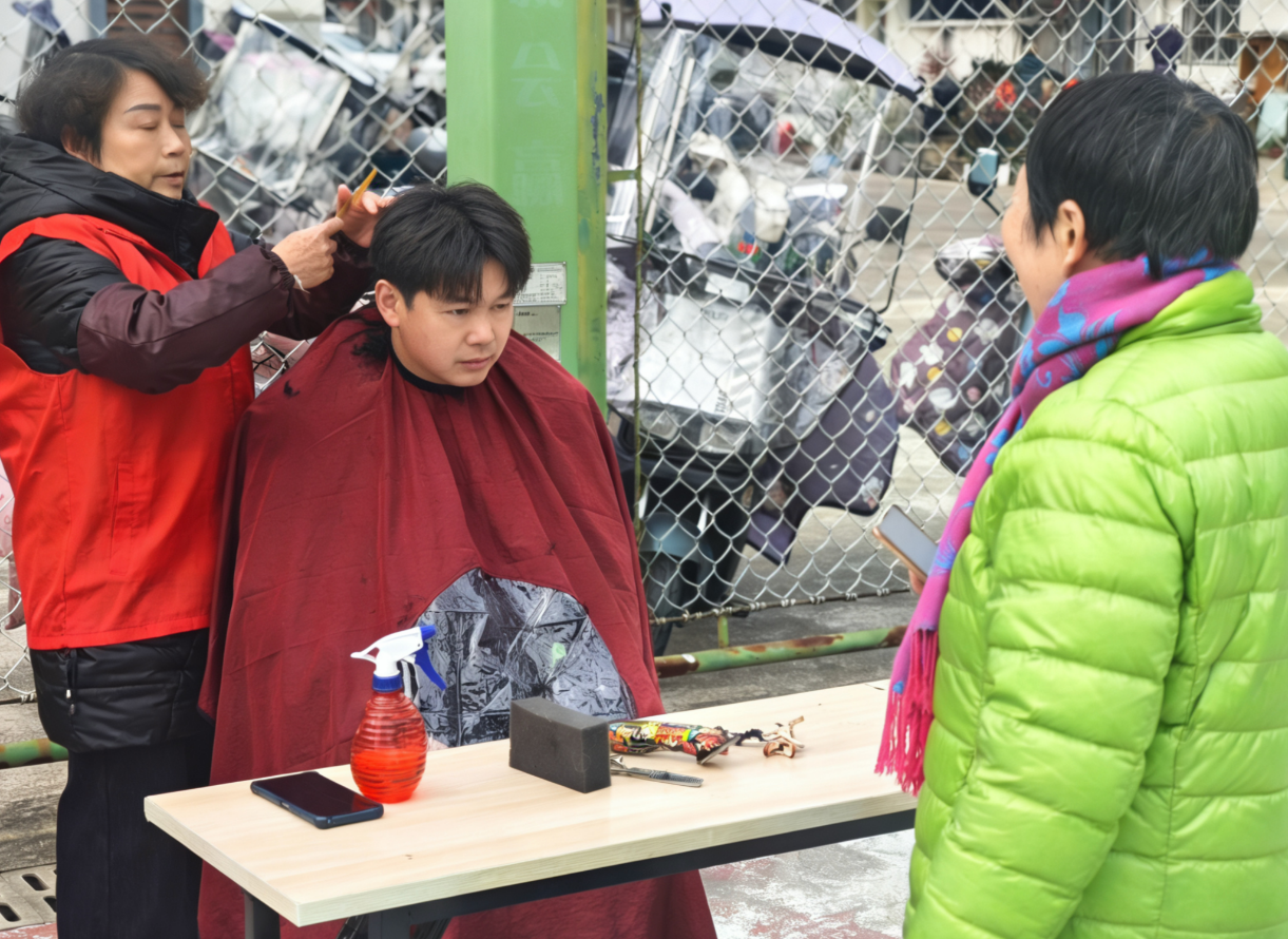 义剪焕新,关爱暖“新”。针对终日奔波在外、难有空闲打理仪容的新业态劳动者,社区贴心安排“爱心义剪”服务。专业理发师指尖翻飞,细致修剪,为30名美团外卖小哥拂去倦容、焕发神采。“剪完头发,整个人都精神了,社区真是想到我们心坎里了!”刚理完发的小陈笑容满面地说道。
