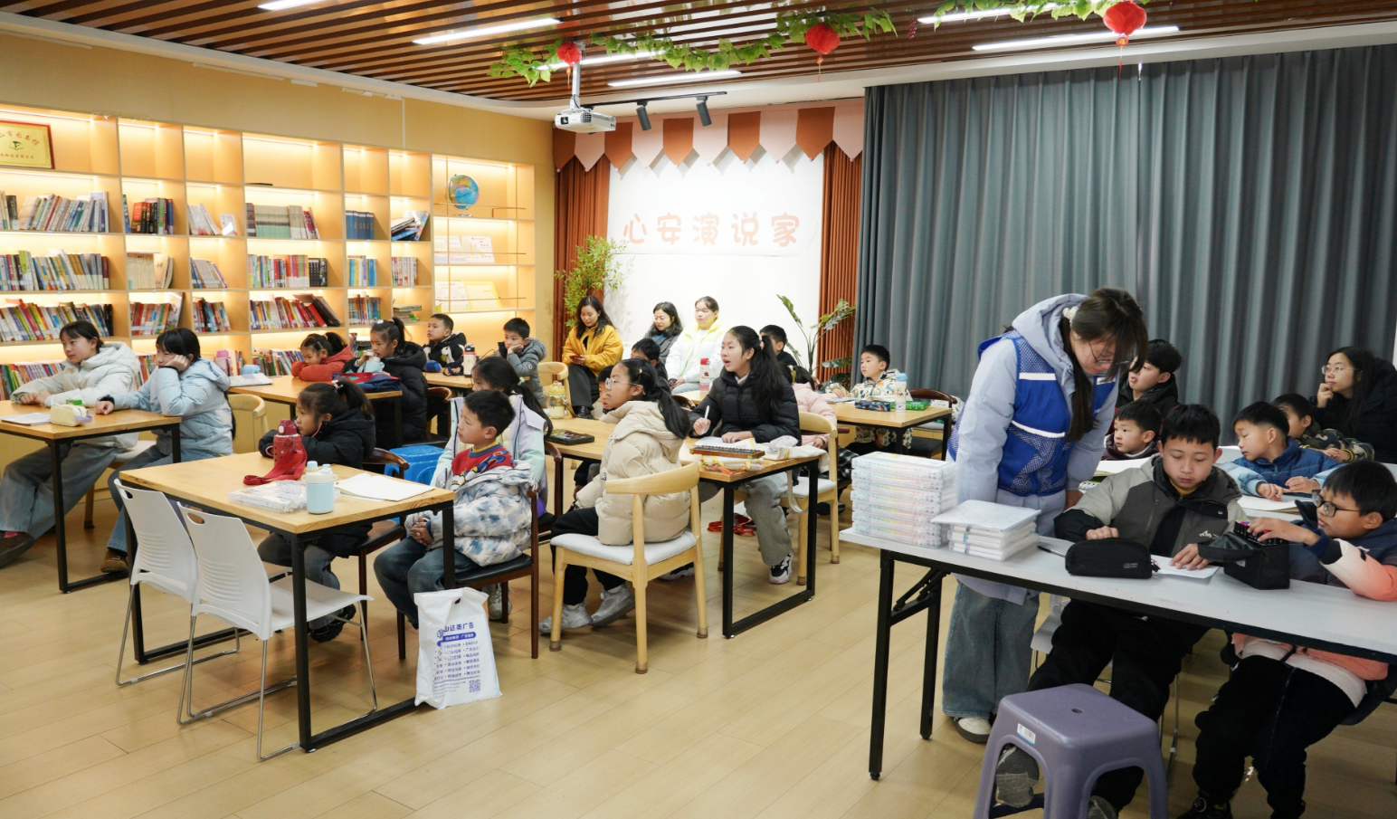 坚持“党建带群建,合力促服务”,社区织密全方位守护网。社区民警走进课堂开展安全专题宣讲,筑牢安全防线;10名返乡大学生志愿者组建教学服务队,全流程参与晨间签到、课业辅导、活动策划与秩序维护。“志愿红”“警察蓝”与“青春绿”交相辉映,成为寒假班里最温暖的风景线。