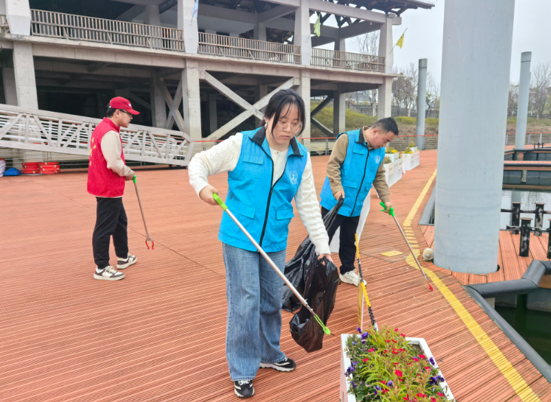活动中,海事志愿者发扬老黄牛精神,化身“岸线美容师”“水上宣传员”。大家手持清洁工具,对月潭湖沿岸、码头周边、临水步道等重点区域进行拉网式清理,捡拾漂浮垃圾、清除杂草杂物、整治卫生死角,不放过一处盲区、不留下一点隐患。面对临水区域清理难度大的问题,志愿者们主动靠前、迎难而上,以老黄牛般的韧劲与坚守,用心守护月潭湖生态岸线。