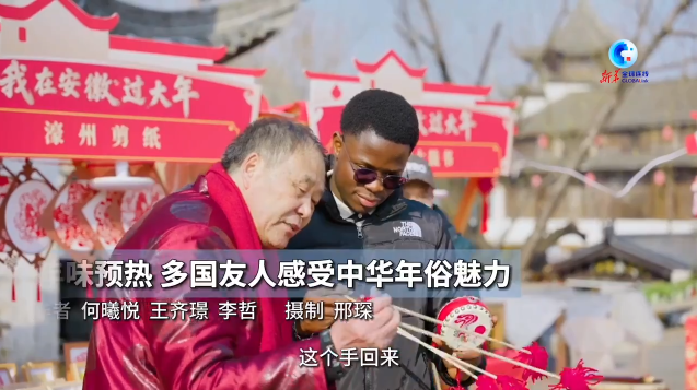 中国农历新年将近,沉浸式年俗体验成为外国游客触摸中国文化的重要窗口。1月23日,“我在安徽过大年”中外友人2026年春节联谊活动在安徽省铜陵市义安区犁桥水镇举办。来自59个国家和地区的150多位在皖外籍友人在这里赏非遗、逛年集,零距离感受中国年的温度和中国传统文化的魅力。