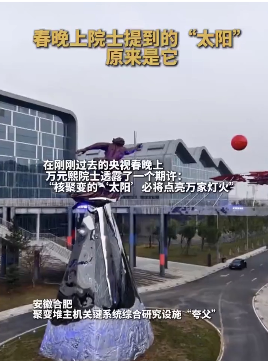 这座雕像位于一个名为“夸父”的大科学装置园区——聚变堆主机关键系统综合研究设施,这里是为下一代“人造太阳”研制核心部件的地方。