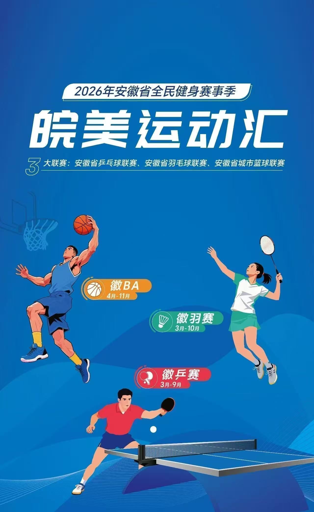 • 以“皖美运动汇”破题:整合全省资源,创新赛制设计,系统性推出乒乓球、羽毛球和篮球的三大群众联赛,摒弃“精英竞技”思维,主打“零门槛、全民参与”。