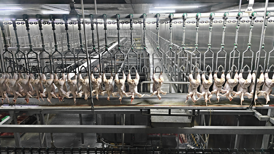 “一条自动化生产线一小时可以处理1.3万多只鸡,相较于传统生产模式,可节省约100人的人力投入。每只鸡从进厂到装入冷库通常只需要35分钟。”站在生产车间门口,蚌埠大成食品有限公司行政主管董大斌如数家珍,“在这里,一只鸡可以被加工成100多个品种,生产时间越短越好,意味着越保鲜。”