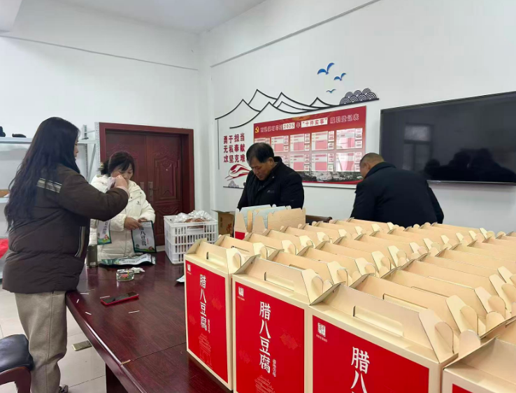 新年伊始,在黟县西递镇石印村村委会大厅,村“两委”和工作队成员正忙碌而有序地将一块块腊八豆腐装进喜庆的红色礼盒中。从独立小包装的便捷零食,到精美大礼盒的馈赠佳品,这种传统特色美食线上线下销售持续向好,呈现出“开门红”的良好势头。小小豆腐块,不仅成为了市民青睐的产品,更承载着石印村集体与驻村工作队携手推动产业振兴、带动村民增收致富的生动故事。