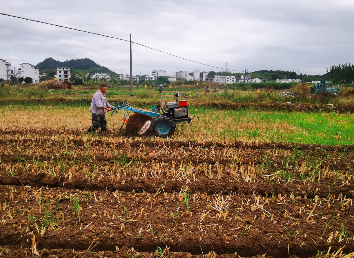 10月17日,走进东临溪镇临溪村上村田畈,开沟直播机来回穿梭,沟里的泥土被均匀撒在畦面上,细碎的土粒在阳光下泛着金黄的色泽。