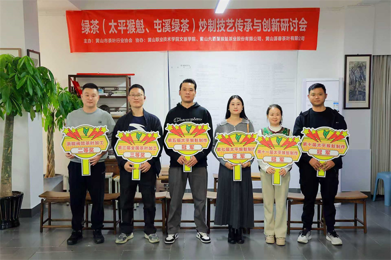 10月29日,由黄山市茶叶行业协会主办的“猴魁屯绿传徽韵·非遗技艺承匠心—绿茶炒制技艺的传承与创新研讨会”,在屯溪源春茶空间成功举办。30余名来自黄山本地的专家学者、非遗传承人、历届太平猴魁制作技艺冠亚军及黄山职业技术学院师生代表参会,共同探讨绿茶技艺的传承与创新之路。