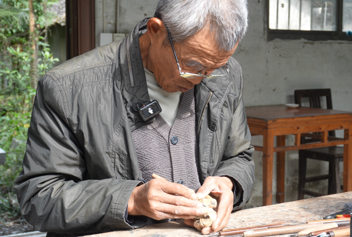 1958年方如金出生于黟县西递镇,自幼随父亲学习雕刻技艺,闲暇时也吹奏竹笛。“在与老艺人们的交流中,我感受到大家对恢复石笛技艺的期盼。”方如金回忆道。但由于需要制作者同时拥有高超的石雕技艺、乐理知识和演奏技能,这样的能者寥寥,“余香石笛”的传承一度出现了断层。上世纪90年代,当方如金决定重拾这门失传技艺时,摆在他面前的是无数难题。首先,石材的颗粒结构不同于竹笛的纤维结构,制作过程中非常容易破碎,刀具和刀法使用上极为讲究。其次,雕刻者必须精通乐理知识和演奏技能,才能在雕刻中准确确定孔径大小、间隔,确保音阶、音准、音色合乎音律。没有专业制笛经验的方如金苦苦探索,改进制作了50多种工具,精心挑选密度合适的石材。为了解决石笛音调偏高的问题,他阅读大量理论书籍,最终通过延长笛身、增大内孔径的方法解决了这一难题。经过近十年的试验和改进,2000年,方如金成功制作出第一支符合音律的石笛,和竹笛相比,它的音质更为清脆悠扬。在婉转的笛声中,方如金仿佛和余香大师激情合奏。