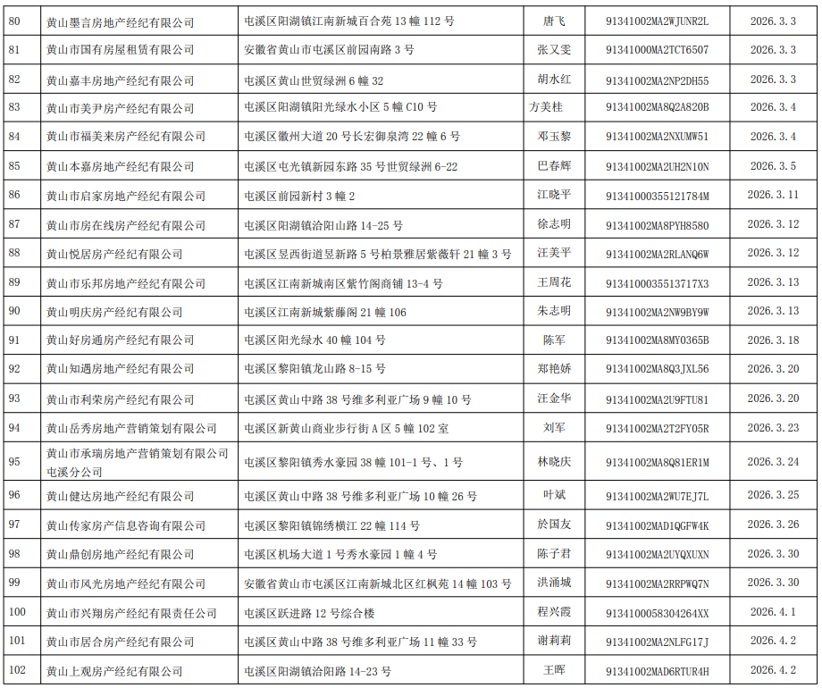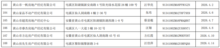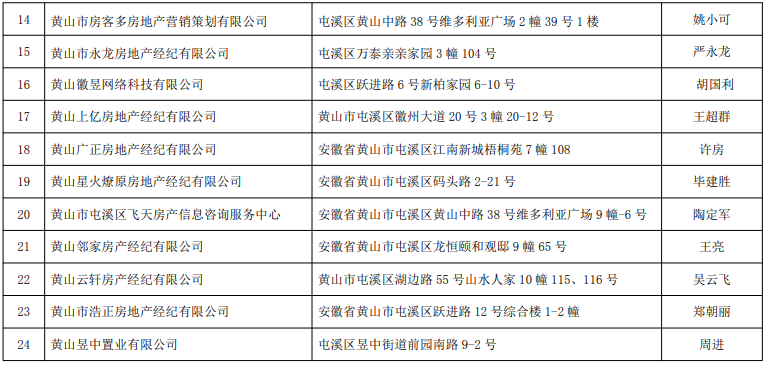 黄山市中心城区已备案并在有效期内的房地产经纪机构108家,未备案房地产经纪机构24家,