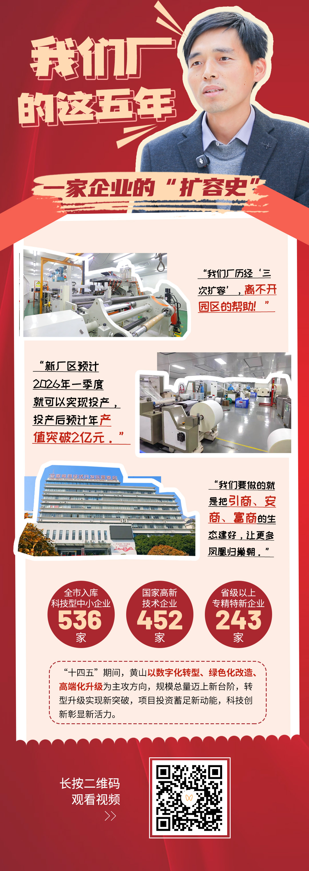 九年三次扩容,折射出营商环境的温度与服务效度。“十四五”期间,黄山以数字化转型、绿色化改造、高端化升级为主攻方向:全市入库科技型中小企业536家、国家高新技术企业452家,“十四五”以来分别净增426家,286家;累计获评省级以上专精特新企业243家,其中国家级“小巨人”26家,……政府与市场“双轮驱动”,传统与新兴“比翼齐飞”的格局已然形成。