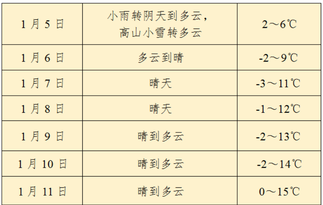 据黄山市气象局最新消息,预计1月5日白天起,全市以多云到晴天气为主。
