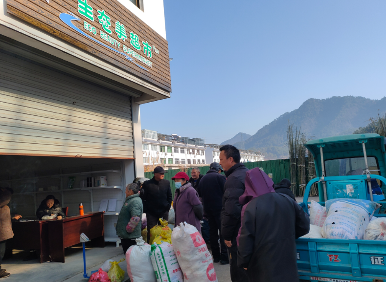 超市运营至今,切实惠及百姓生活,为乡村振兴注入鲜活的生态活力,村民参与环保的积极性显著提高。有了生态美超市后,那些曾经被大家认为是垃圾的塑料瓶、废纸等废弃物,纷纷被村民们转化为“绿色资产”,有效减少了垃圾污染,显著改善了村容村貌。2025年全镇生态美超市累计兑换达2604次,累计兑换积分总额38452.72分,兑换各类生活用品价值近万元。