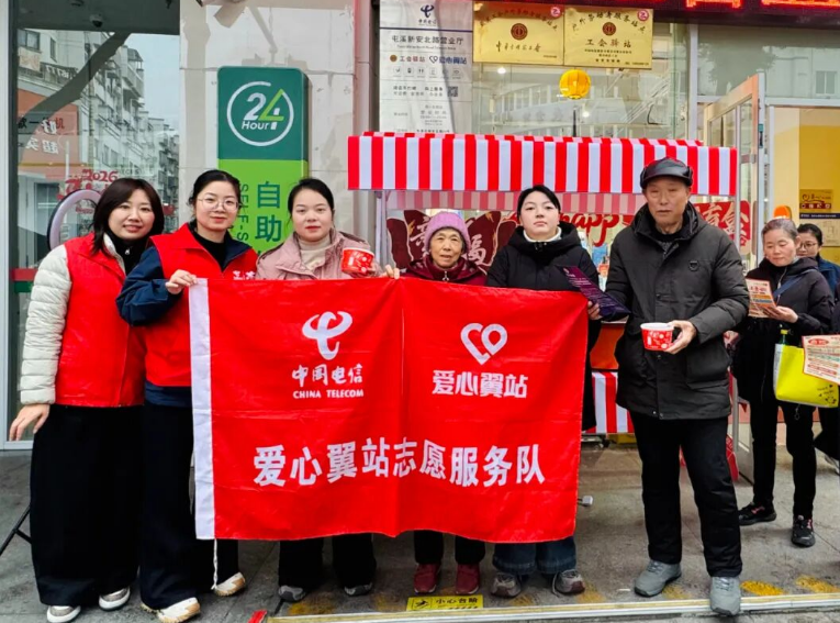 1月26日,农历腊八节清晨,中国电信黄山分公司“爱心翼站”组织青年志愿者走上街头,开展“浓情腊八·暖心反诈”主题公益活动,在弘扬传统节日文化的同时,也为市民送去一份温暖的“安全礼”。