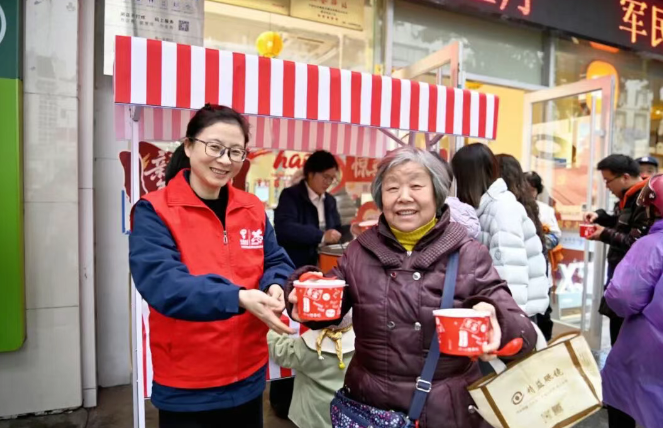 志愿者们将提前熬制好的腊八粥细心分装,连同反诈宣传资料一并送到过往市民手中。“阿姨,腊八节快乐!天气冷,喝碗粥暖暖身。最近诈骗电话多,您看看这份提醒,涉及转账汇款一定要谨慎。”志愿者们主动为过往市民、环卫工人、老年群体递上热粥,同时以通俗易懂的语言讲解电信诈骗高发案例、常见套路及防范技巧,重点提醒老年市民警惕陌生来电、虚假转账等诈骗行为,手把手指导大家辨别诈骗陷阱。这份“暖胃又暖心”的组合深受市民欢迎。环卫工人李阿姨接过腊八粥,认真聆听志愿者讲解后感慨道:“粥很甜,你们的话更贴心,这样的提醒太及时了!”