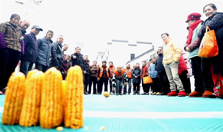 1月29日,歙县岔口镇在双溪公园举办全民健身大拜年暨第三届农民趣味运动会,设置了“蔬菜保龄球”“趣味抓鸡”和“挑柴火接力赛”等趣味运动项目,并以当地土鸡、土猪肉、鲜香菇等作为奖品,吸引村民参与,丰富群众文化生活。