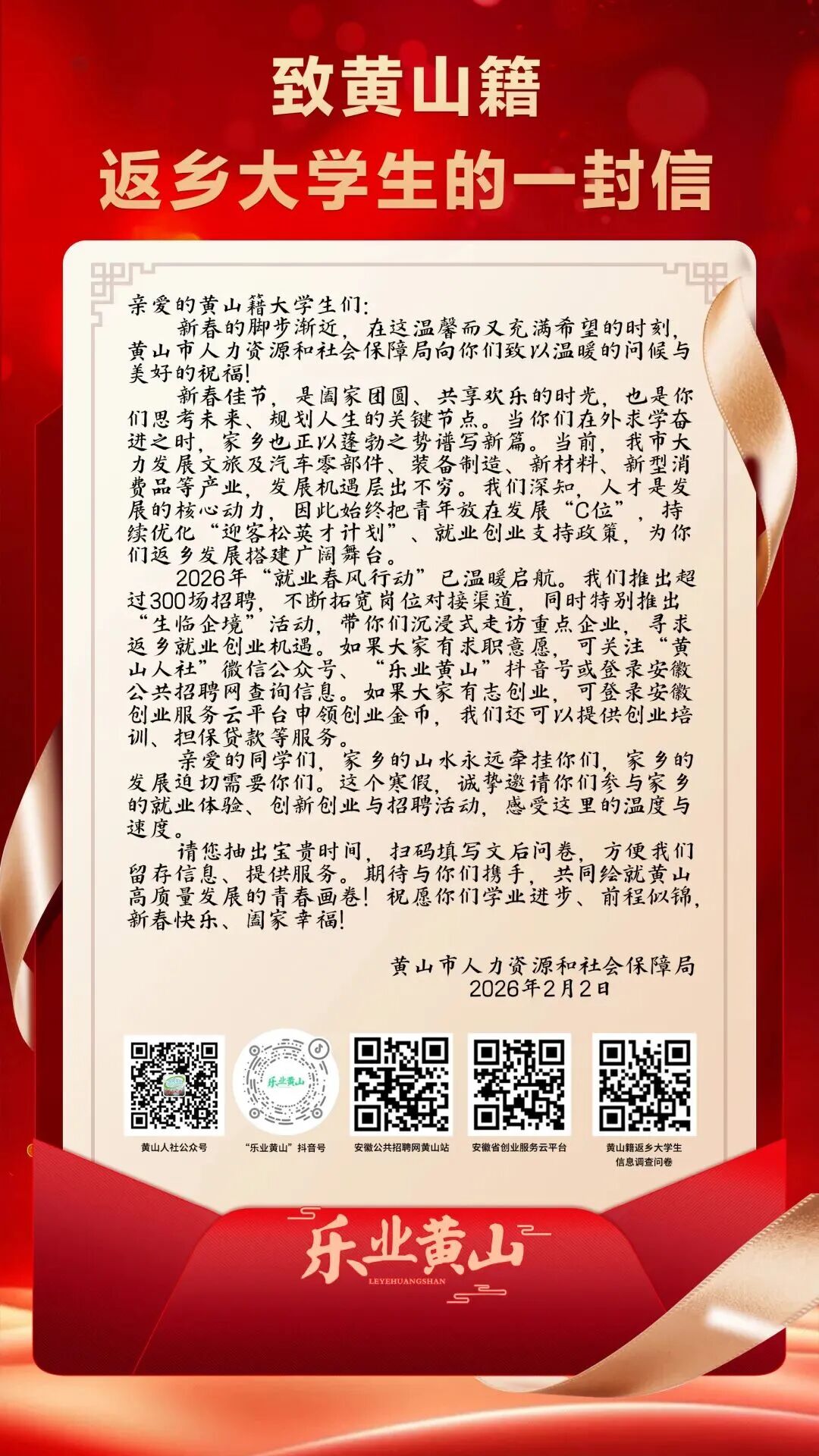 致黄山籍返乡大学生的一封信