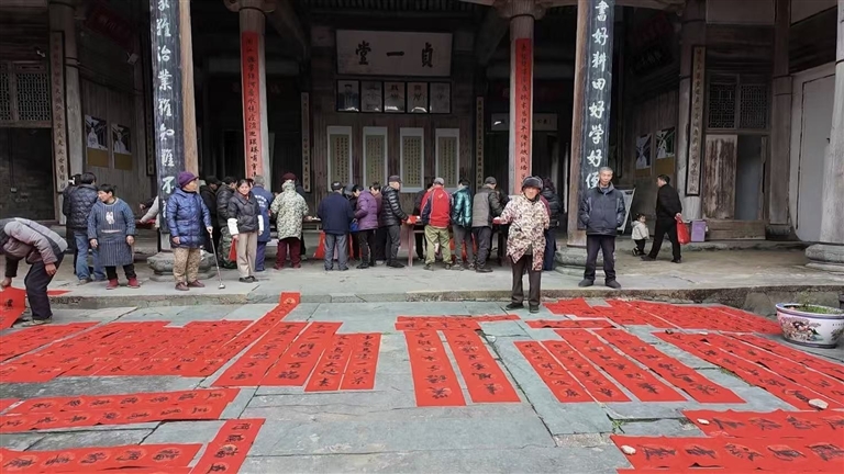 2月3日,祁门县渚口乡新时代文明实践所联合渚口村新时代文明实践站,在省级文保单位贞一堂内举办了“迎新春·送春联”文化惠民活动。活动特邀祁门县书法协会多位书法家现场挥毫,吸引众多村民参与,为古老祠堂增添了浓厚的节日气息。 柳 佳/摄