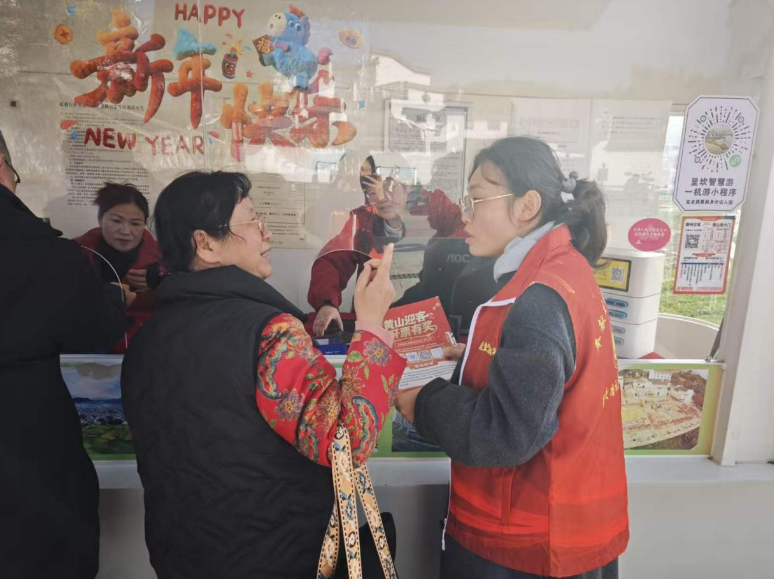 志愿红妆点年味,暖心服务暖人心。文旅热潮中,一抹鲜亮的“志愿红”成为呈坎最动人的风景。呈坎镇以党建引领志愿服务,统筹130余名志愿者全时段驻守景区街巷、古村服务点、度假区要道、高速服务区下口等关键点位,化身游客旅途的“暖心人”,用坚守与服务擦亮呈坎文旅温暖底色。
