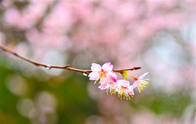 沿G237前行,满目繁花绵延不断。清新的空气夹杂着淡淡花香,扑面而来。雨雾中的山野樱花,既添了几分诗意仙气,又为春日出行增添了别样浪漫。驾车行驶其间,仿佛穿行于流动的画卷,让每一位途经的司乘人员都心旷神怡。