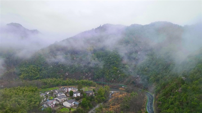 3月1日,祁门县迎来春日细雨。春雨浸润的山野间,云雾缭绕,漫山遍野的野生樱花正值盛放期,粉白相间的花朵与错落的乡村民居、流动的朦胧云雾相映成趣,绘就一幅灵动的春日山水画卷。