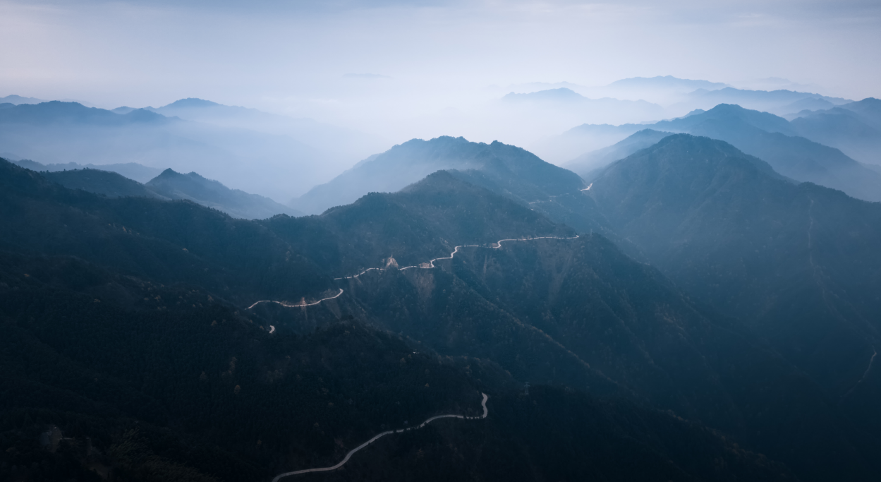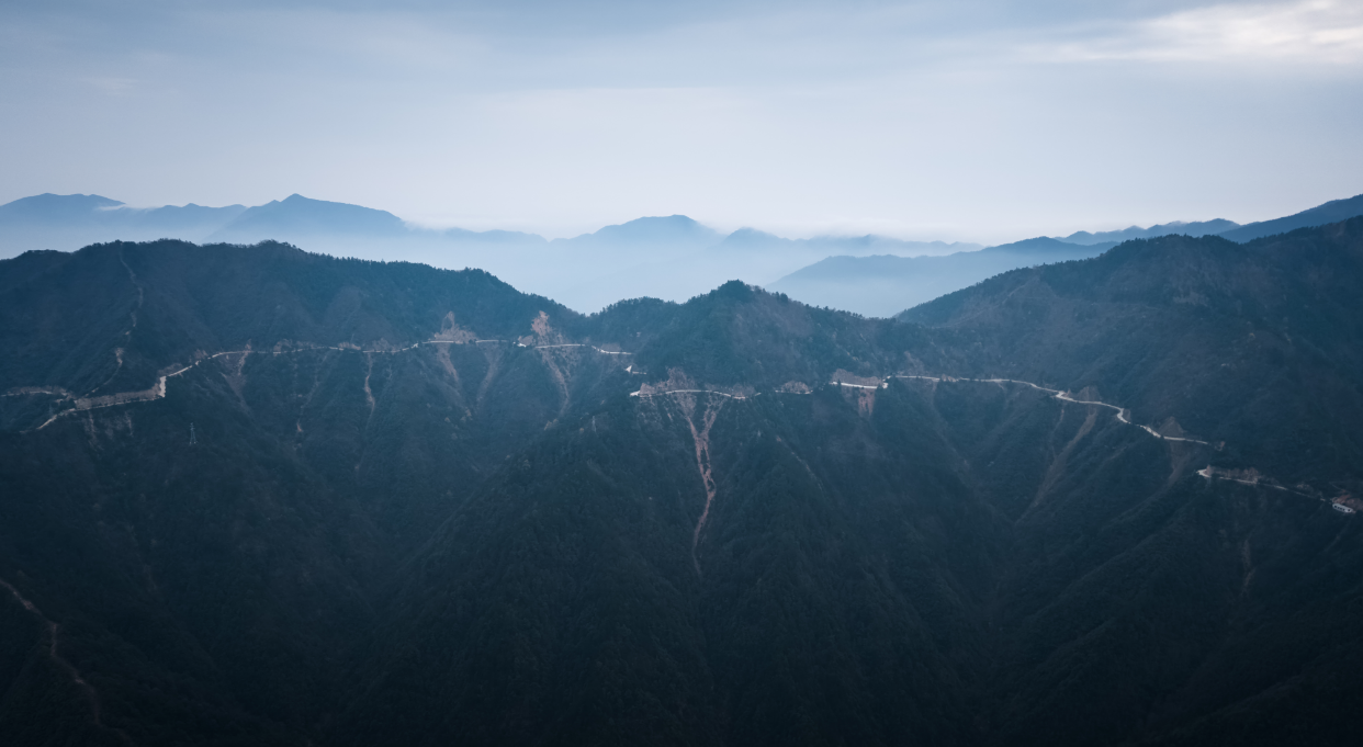 云雾升腾,徽州天路的千山层峦尽被烟岚晕染。青山叠翠,峰峦若隐若现,远山含黛、近坡凝绿,水墨意境浑然天成。云影流转间,山路与林海相映成趣,勾勒出皖南山水空灵秀美的诗意画卷。