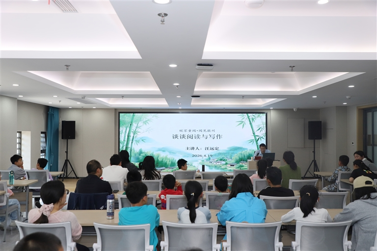 4月19日,“皖家童阅·阅见徽州——黄山本土文化浸润下的亲子共读成长课”主题亲子讲座,在屯溪区戴震路社区皖家幸福驿站多功能活动室举行。中国作家协会会员汪远定结合自身文学创作实践经历,围绕高效阅读方法与孩子们进行分享。冯溪孜张妍/摄