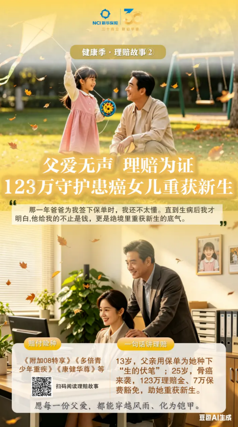 从13岁的保障布局,到25岁的风险兑现,新华保险以多元产品组合、快速理赔通道、全程陪伴服务,践行长期保障、稳妥守护的初心。理赔不是终点,而是回归正常生活的新起点,我们愿以可靠保障与暖心服务,守护每一个家庭平稳渡过风雨,回归安稳日常。